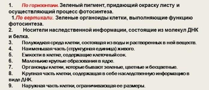 По горизонтали 1 хлорофилл