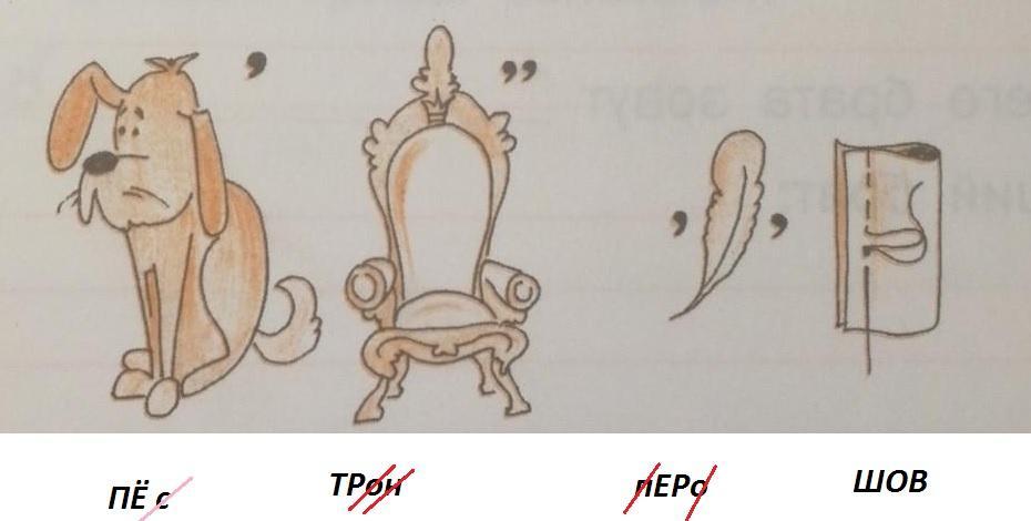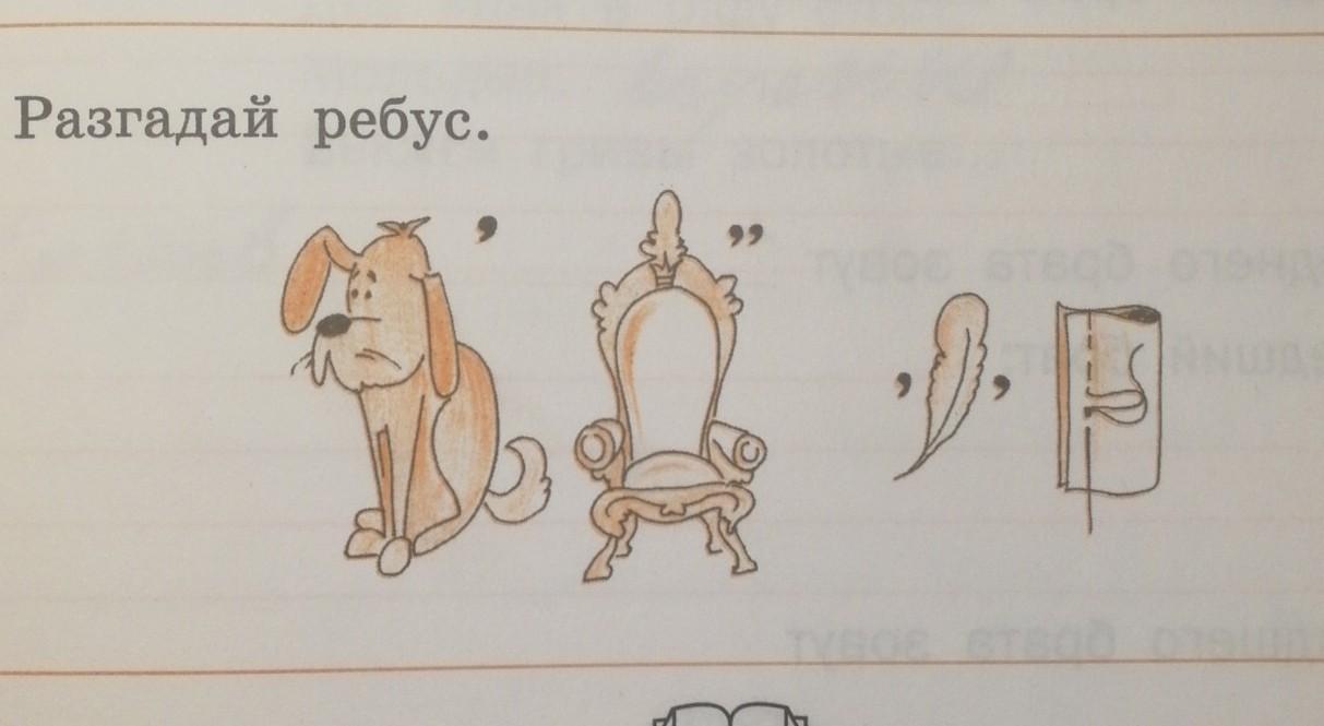 следующее как вы видите перо изображено подальше от стула, значит сделаем пробел. нарисовано перо убираем 1 и 4 букву получается ер.