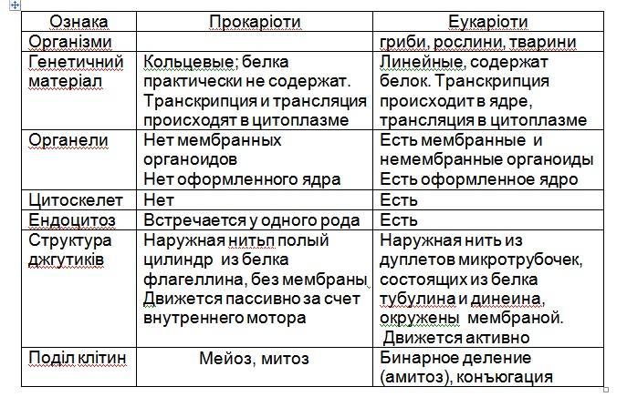 1)Сравните прокариоты с еукариотами