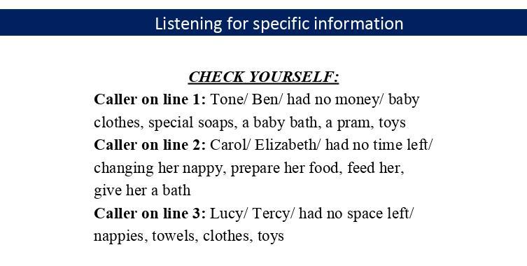 4. changing her nappy, prepare her food, feed her, give her a bath