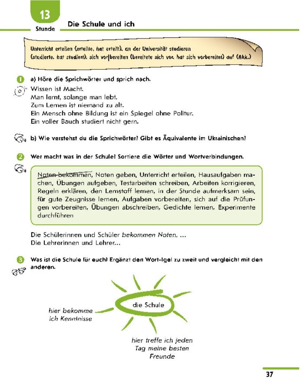Die Schülerinnen und Schüler bekommen Noten, machen Hausaufgaben, schreiben Testarbeiten, lernen den Lernstoff, sind in der Stunde aufmerksam, lernen für gute Zeugnisse, bereiten sich auf die Prüfungen vor, schreiben Übungen ab, lernen Gedichte .