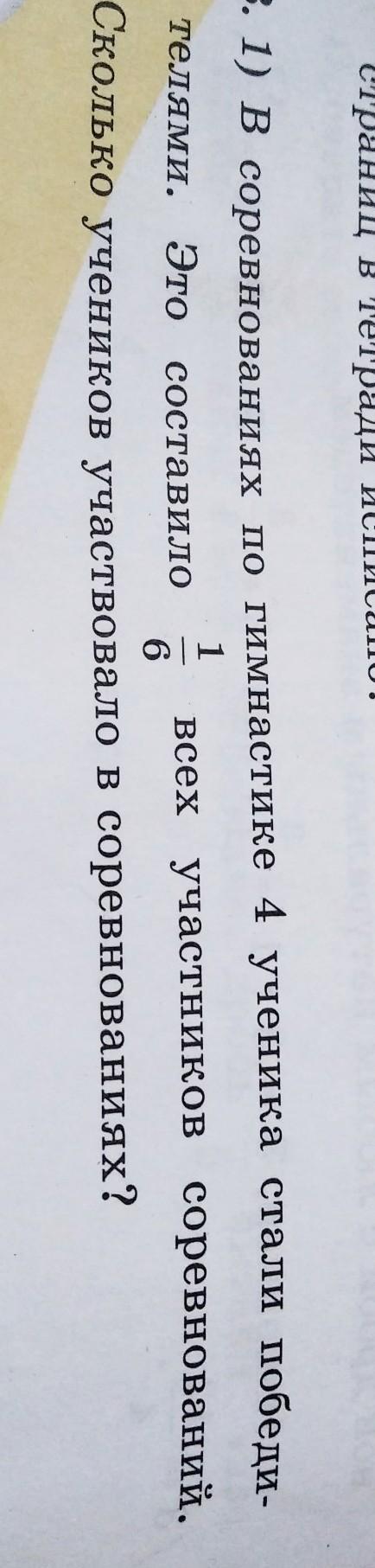 1/6 х 4 = 24 учеников участвовало в соревнованиях