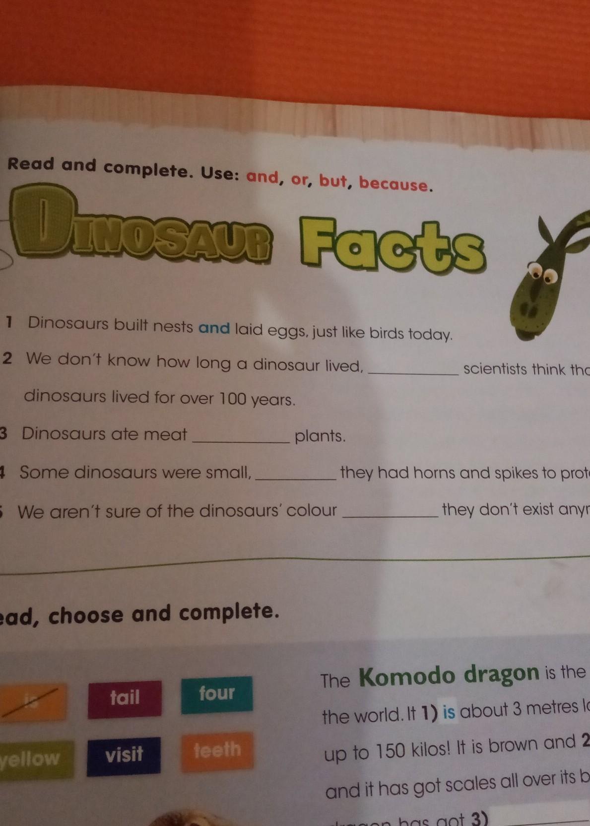5. We aren't sure of the dinosaurs' colour BECAUSE they don't exist anymore.
