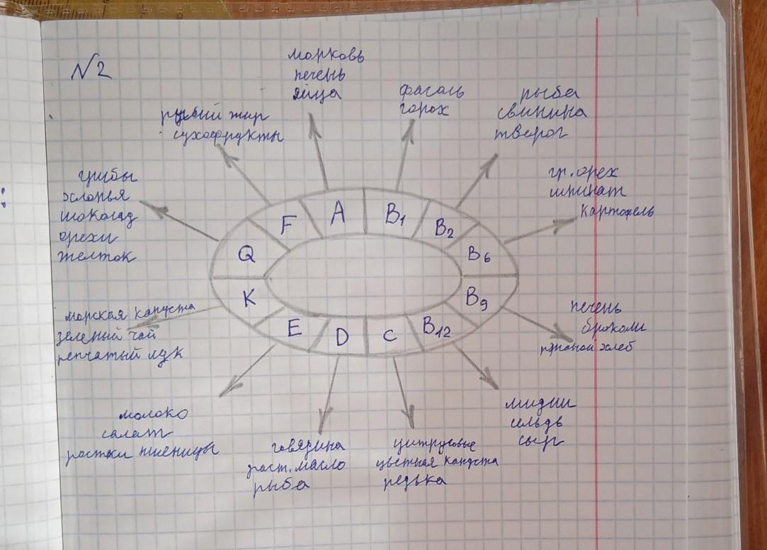 изобразите в виде схемы типы витаминов и продукты, их содержание