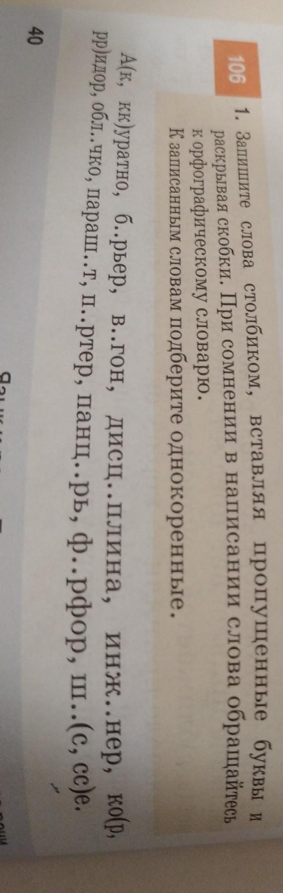 1. Запишите слова столбиком, вставляя пропущенные буквы и
