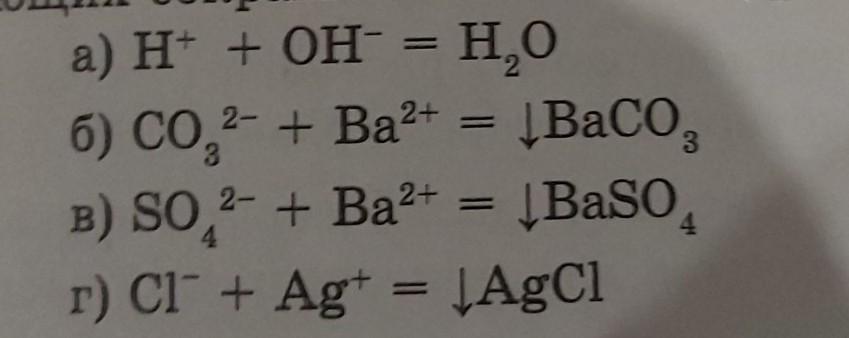 Напишите полное ионное и молекулярное уравнения для следующих сокращённых ионных уравнений.
