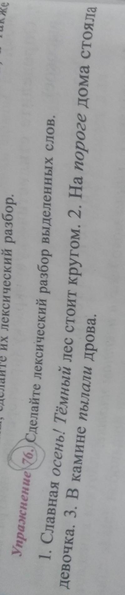 Темный (лес) - 1) лексич. знач. "лишенный света, погруженный во тьму", 2) переносное значение, метафора, 3) семантич. мотивированное значение, 4) свободное значение, 5) экспрес. окраска для создания образности, 6) двузначное - темная голова, темный человек, 7) общеупотребительское, разговорное, 8) исконно русское слово, 9) синонимы - черный, мгла, антонимы - светлый, яркий, солнечный