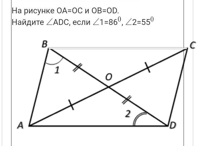 угол АDC =угол 2+угол СDO=55*+86*=141*