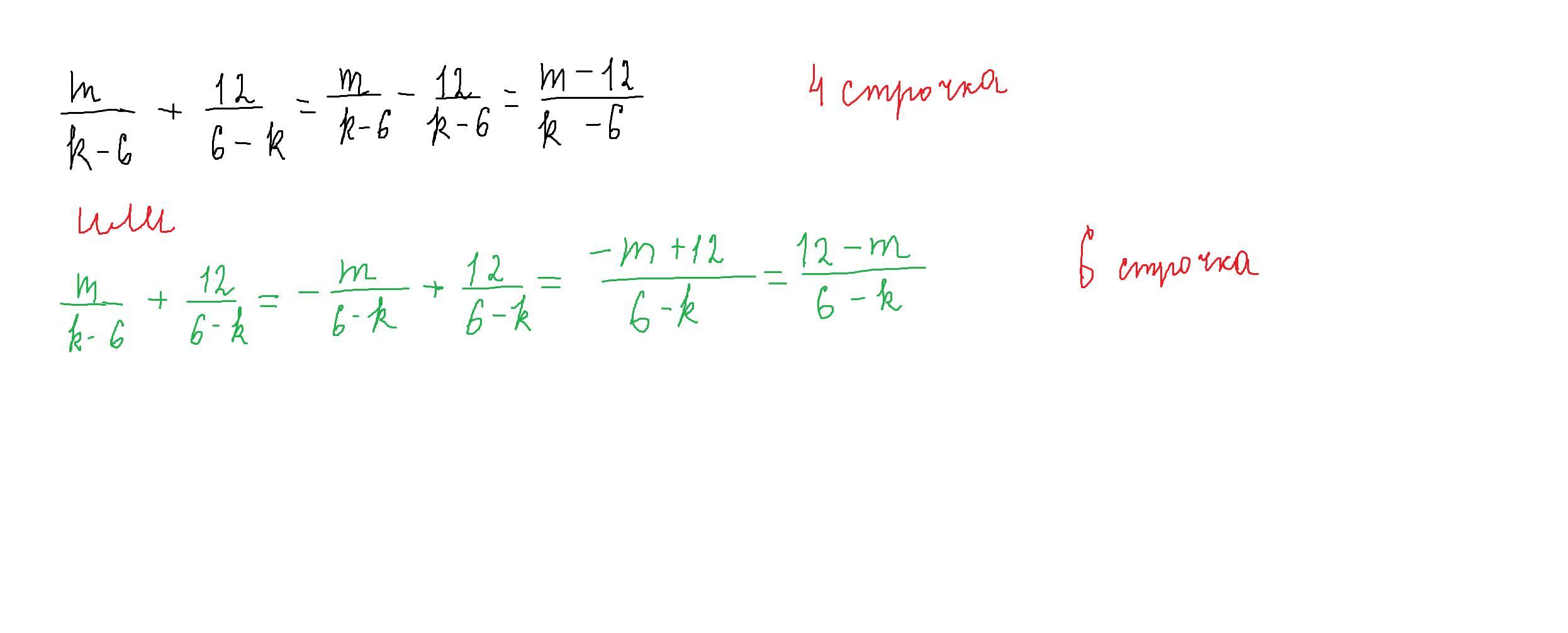 верные ответы в 4 и 6 строчках в зависимости от того,к какому знаменателю привели дробь