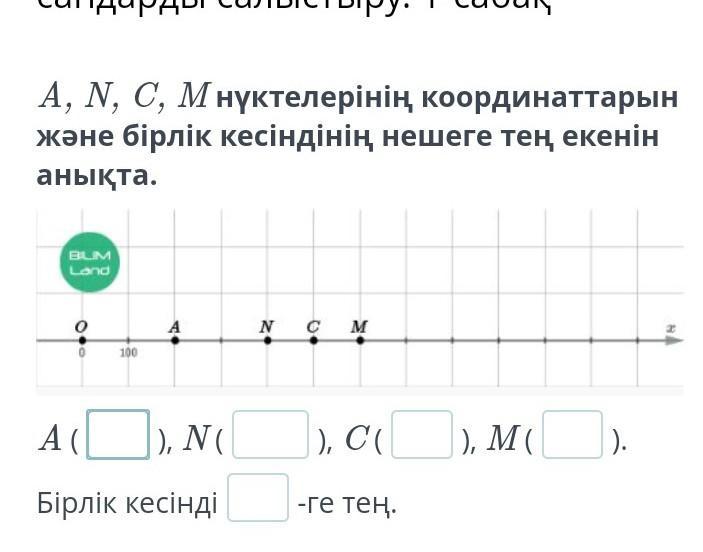 A, N, C, M нүктелерінің координаттарын және бірлік кесіндінің нешеге тең екенін анықта. помогите