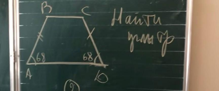 Трапеция равнобедренная (AB=CD), значит, углы при основаниях будут равны: BAD=CDA=68°. Можно их сложить 68+68=136° и от 360°-136°=224° (так как сумма углов выпуклого четырехугольника равна 360°). И 224°:2=112° (так как ABC=BCD).