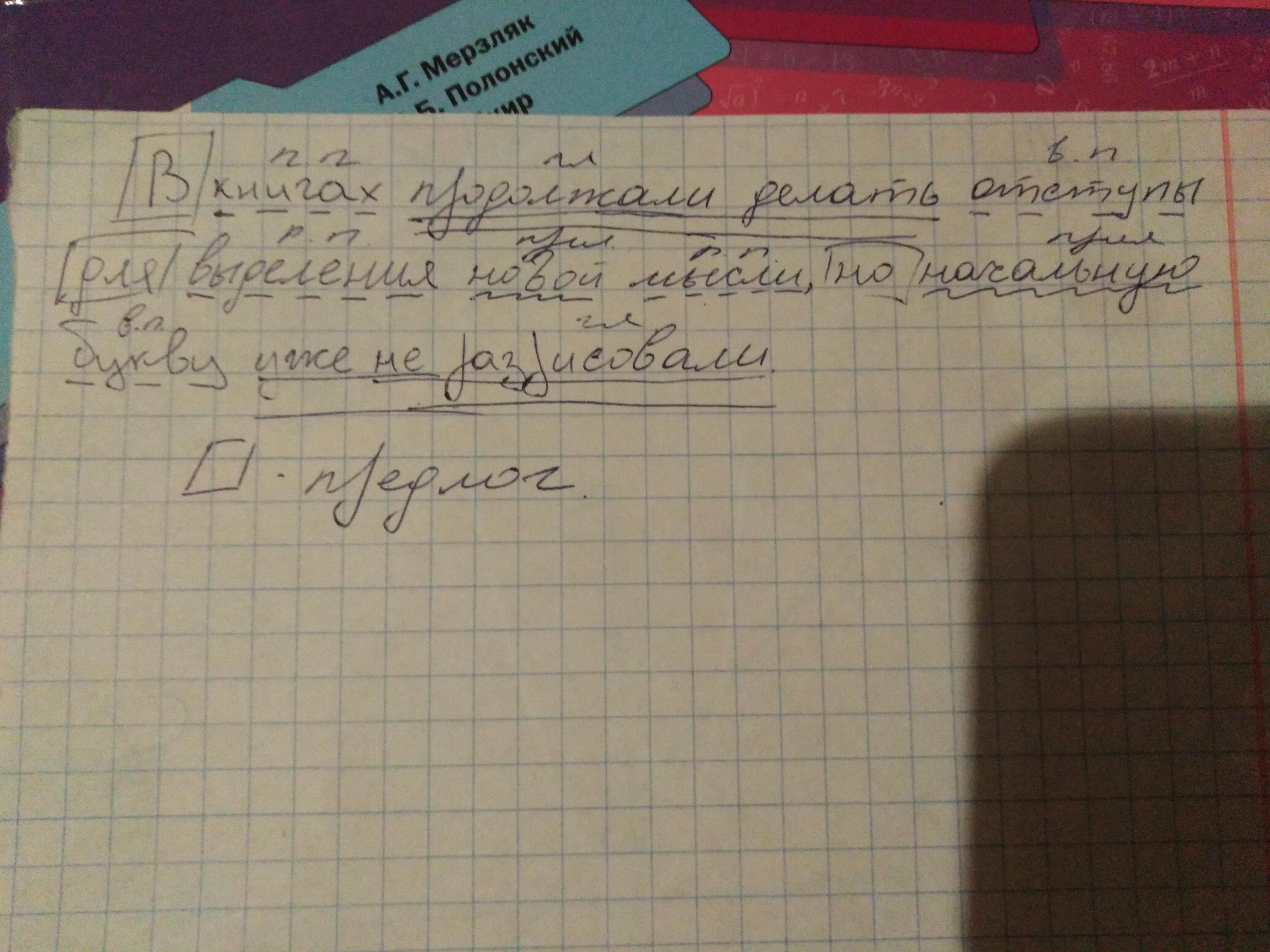 Синтакстческий разбор предложения: В книгах продолжали делать отступы для выделения новой мысли, но начальную букву уже не разрисовывали.