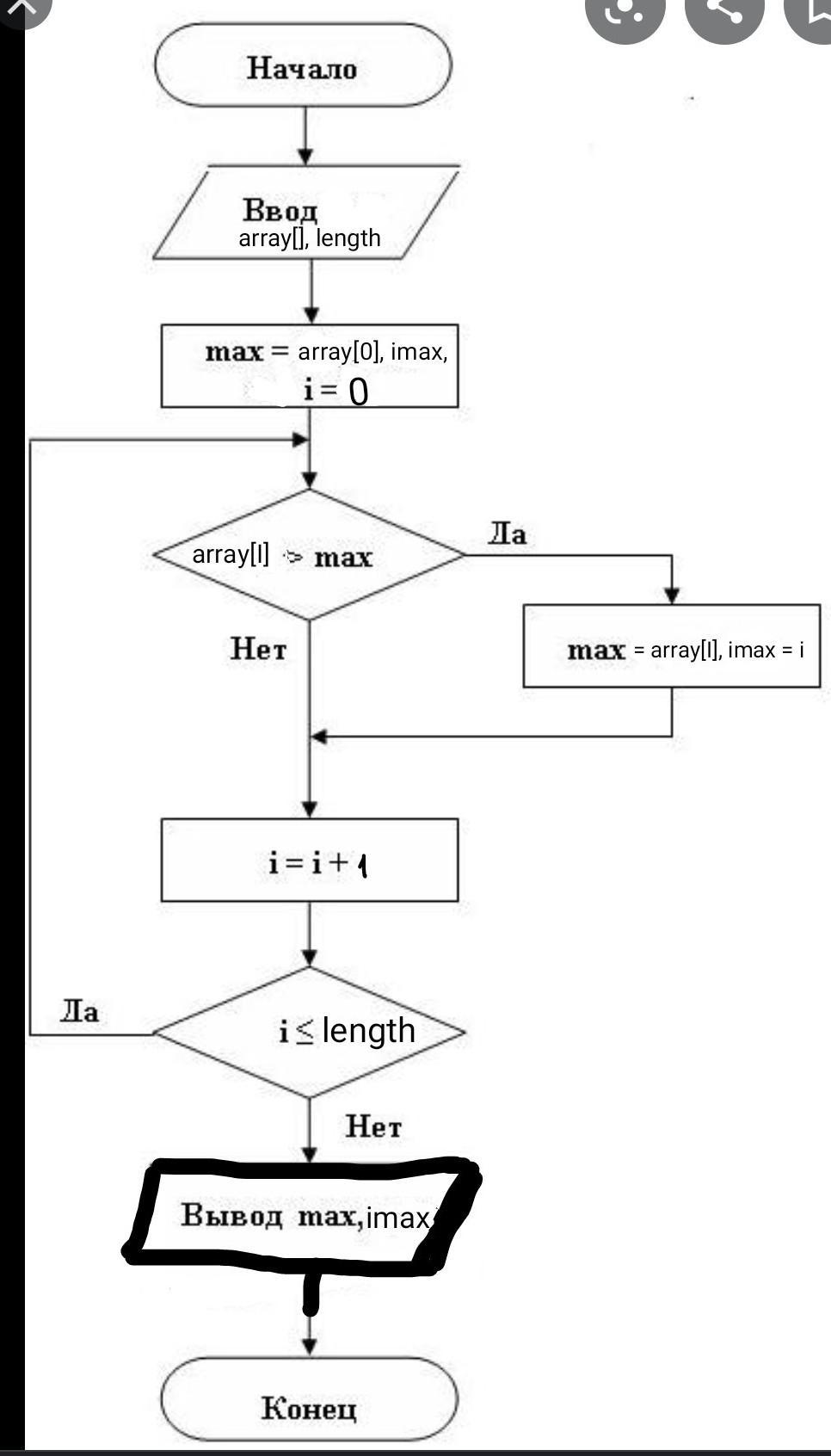 Понять идею алгоритма нахождения максимального элемента в массиве. Записать блок программы для реализации этой идеи