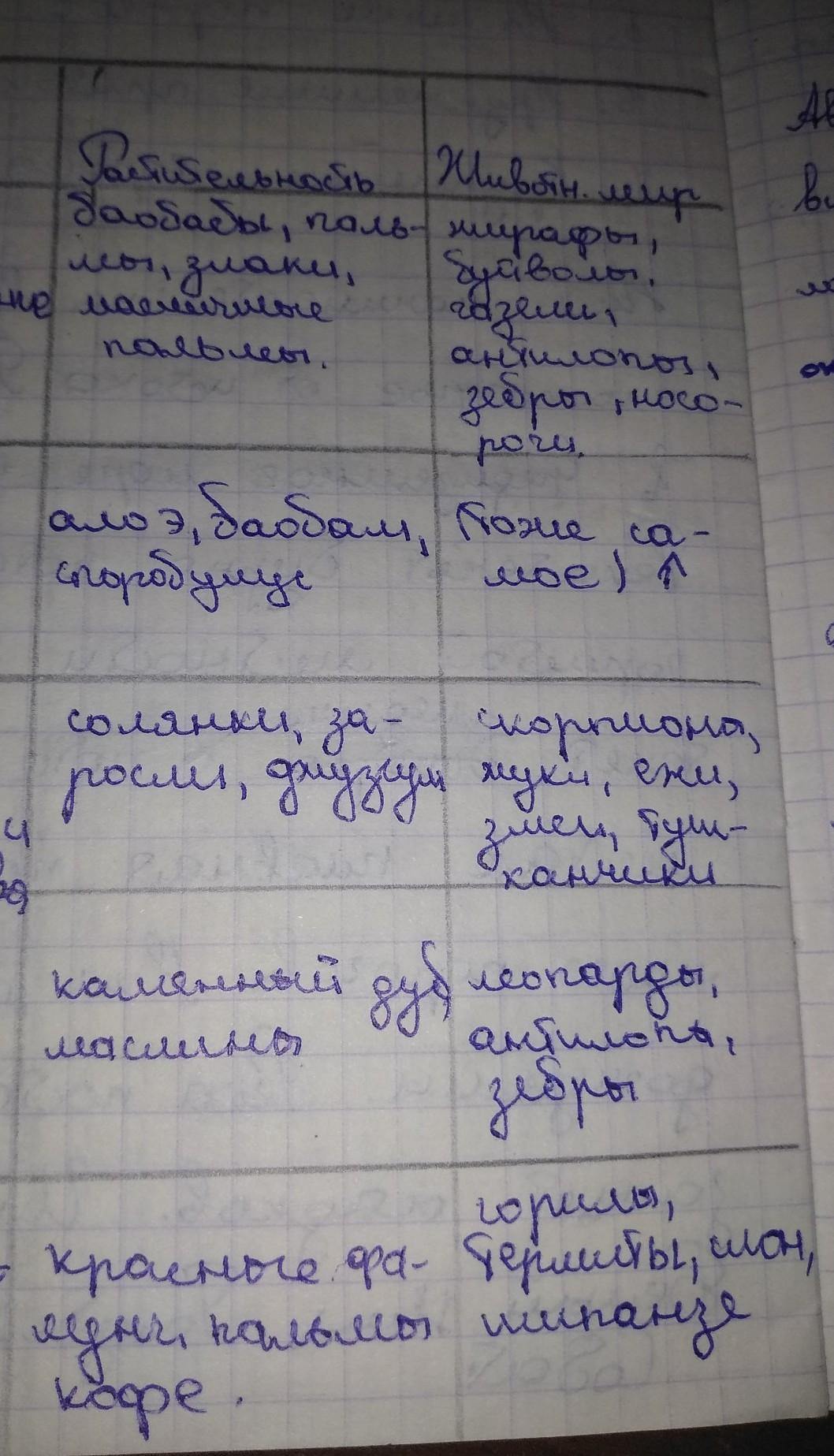 таблица по географии 7 класс: