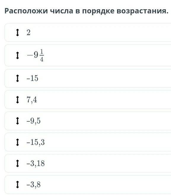 -15,3; -15; -9,5; -9 1/4; -3,8; -3,18; 2; 7,4.