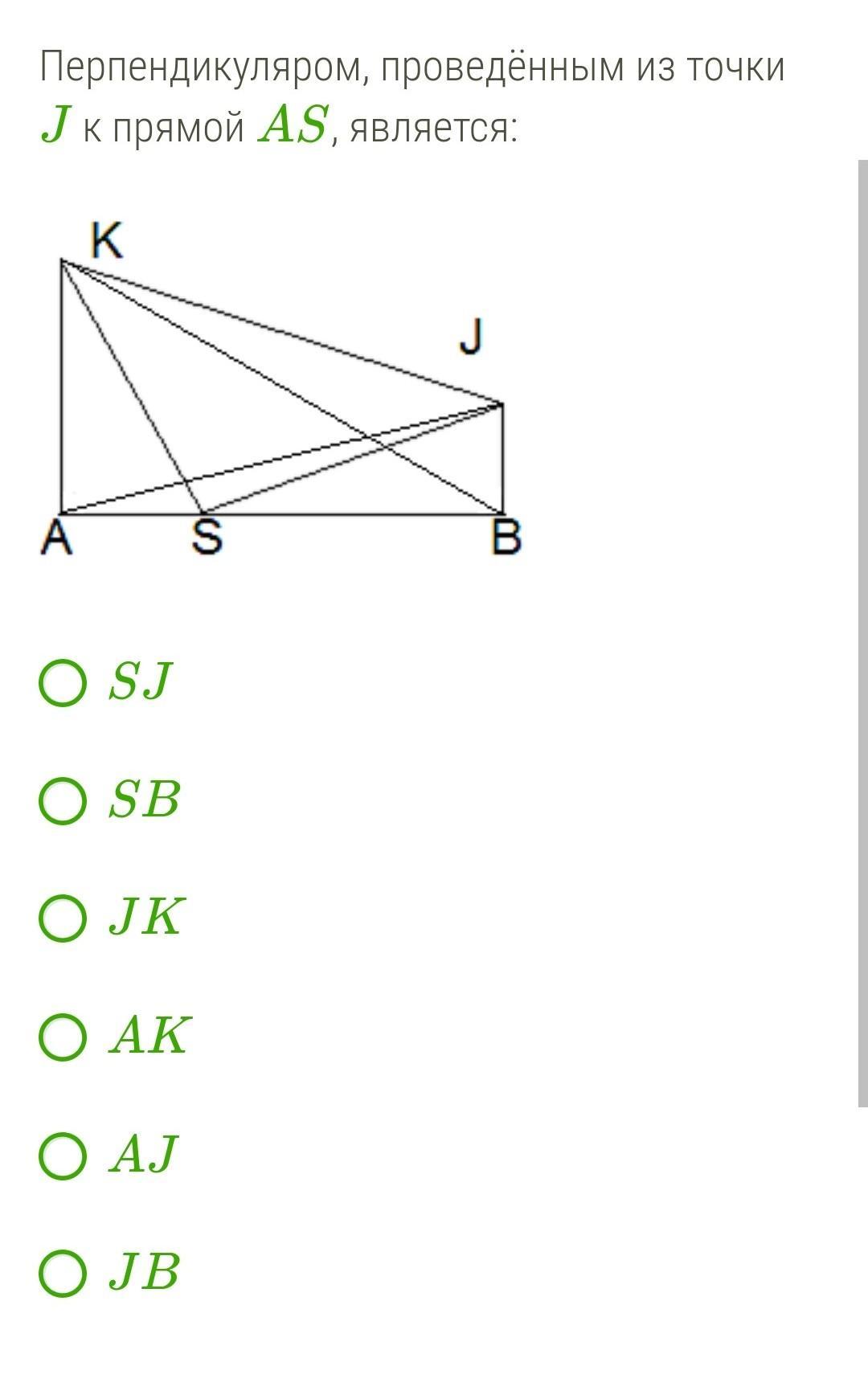 Тогда JB – перпендикуляр проведённый из точки J к стороне AS.