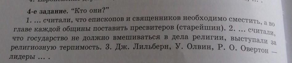 1. Пресвитериане считали, что епископов и священников необходимо сместить, а во главе, каждой общины поставить пресвитеров (старейшин).