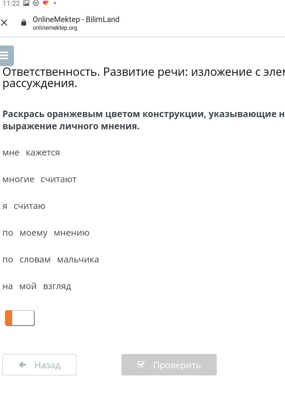 Раскрась оранжевым цветом конструкции, указывающие на выражение личного мнения.