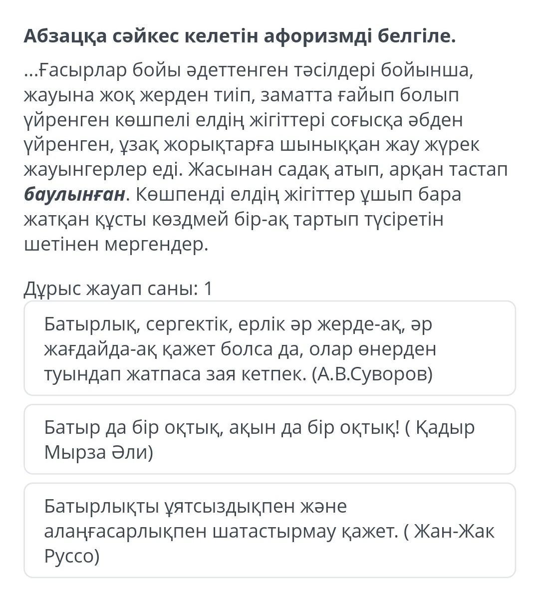 Абзацқа сәйкес келетін афоризмді белгіле.