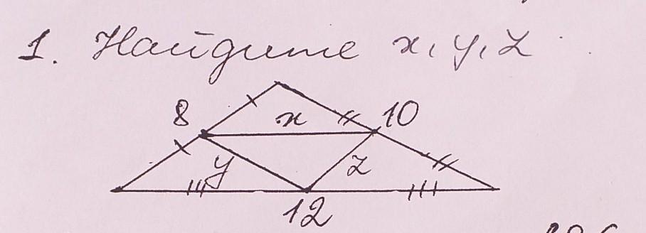 Ответ: х,у,z - средние линия для треугольника АВС, они равны половине сторон к которым не проведены, то есть