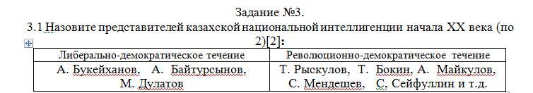 3.1 Назовите представителей казахской национальной интеллигенции начала ХХ века (по 2):