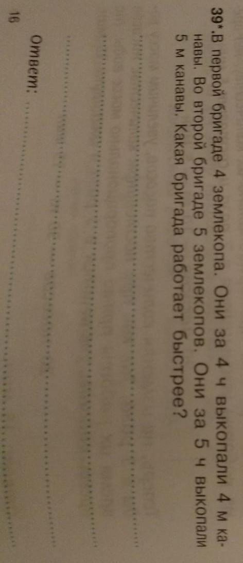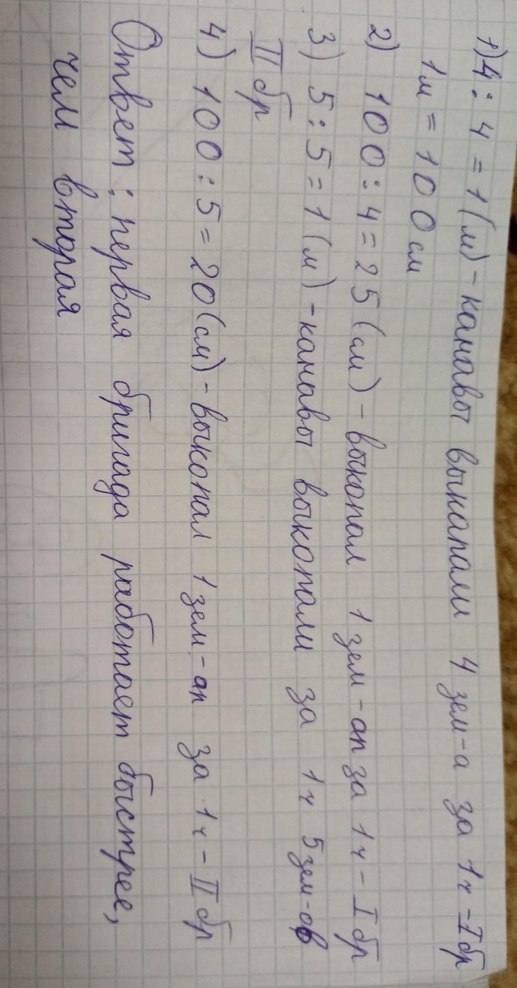25см >20 см или 0,25м > 0,2м значит первая бригада работает быстрее
