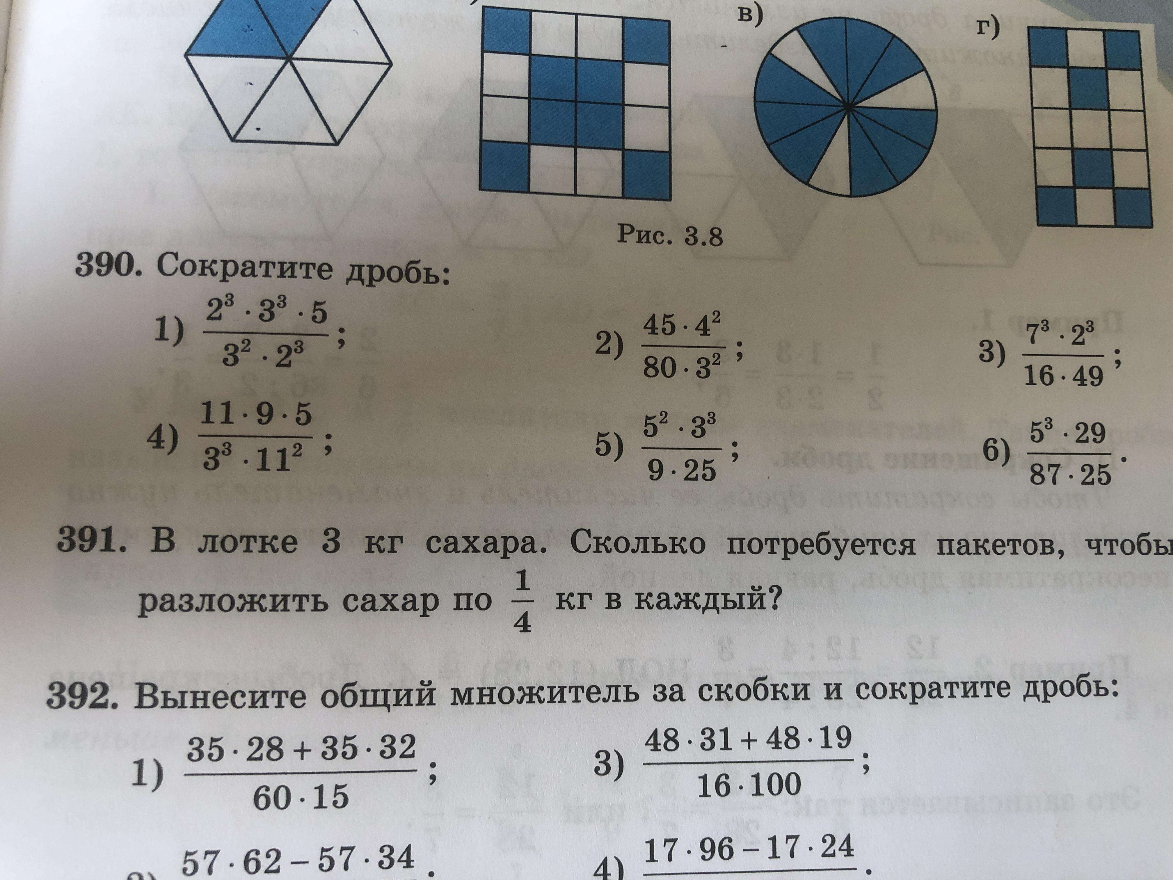 В №390 не нужно возводить в квадрат или перемножать. Сокращаем те цифры, у которых одинаковая степень. СРОЧНОООо