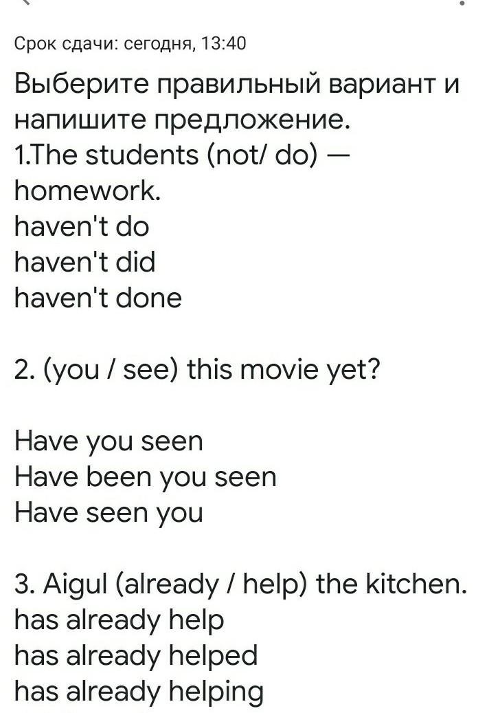 4. I (know) her for a long time.а) have knew б)have known в)have know 5. I (already / try)this game. а) has already trying б)have already tried в)already have try 6. Luke (win) every game he (play). а) has won / have played б) has won / has played have won / в) have played г) have won / has played