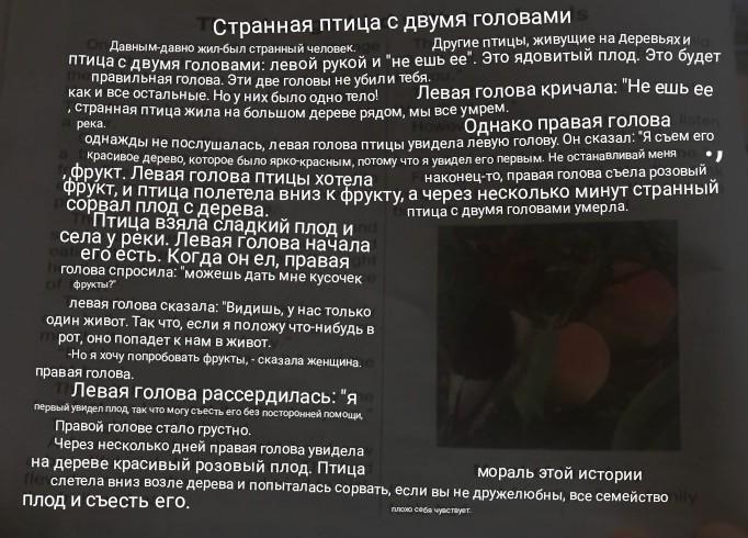 птицы с двумя головами: левой рукой и "не ешь ее. Это ядовитый плод. Это будет