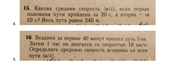 1. первую половину пути и вторую складываем, то есть 10с+20с = 30с, потом делим на кол-во, то есть на 2, 30 / 2 = 15. Значит средняя скорость 240 метров в 15сек, но мы можем сократить на 15 и получим 16 метров в секунду