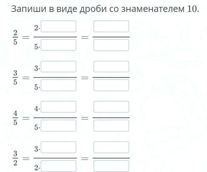 Пример: 2/5=2×10:5×10=20/50