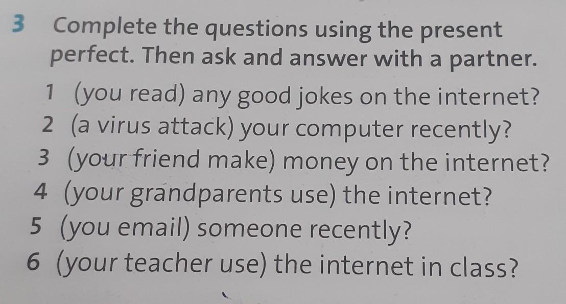 Вопросительные предложения в Present Perfect образуются следующим образом: Have/Has + подлежащее +V3?