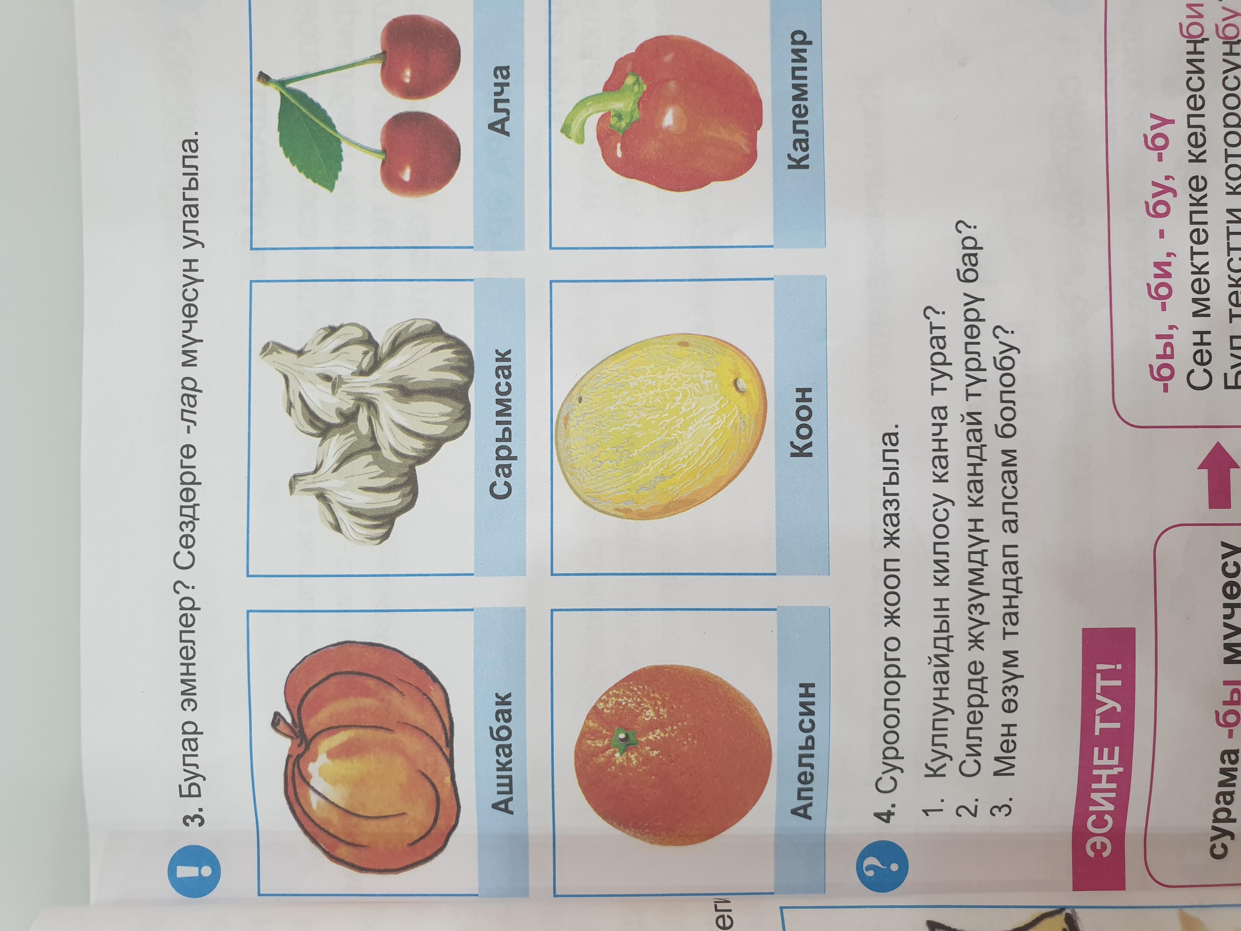 ашкабактар сарымсактар алчалар апельсиндер коондор калемпирлер