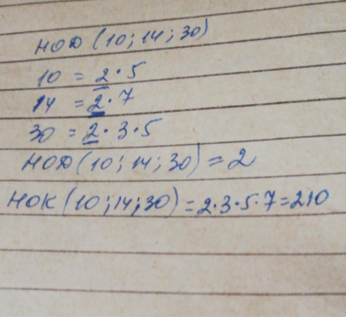 Ответ:НОД(10,14,30)=2