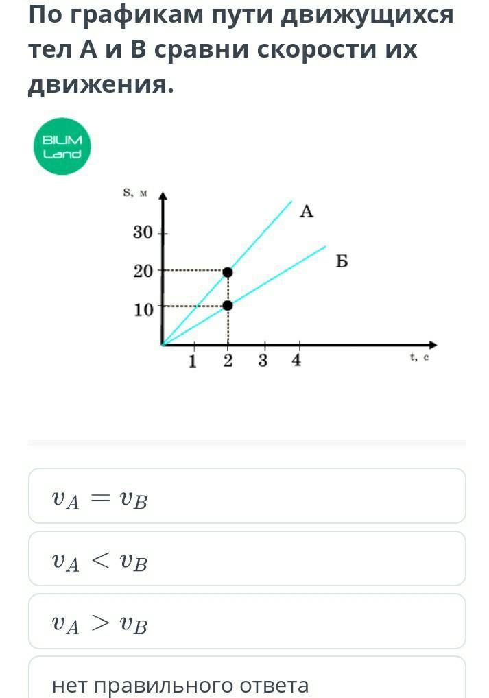 потому что Va судя по графику = 10 м/с, а Vb = 5 м/с