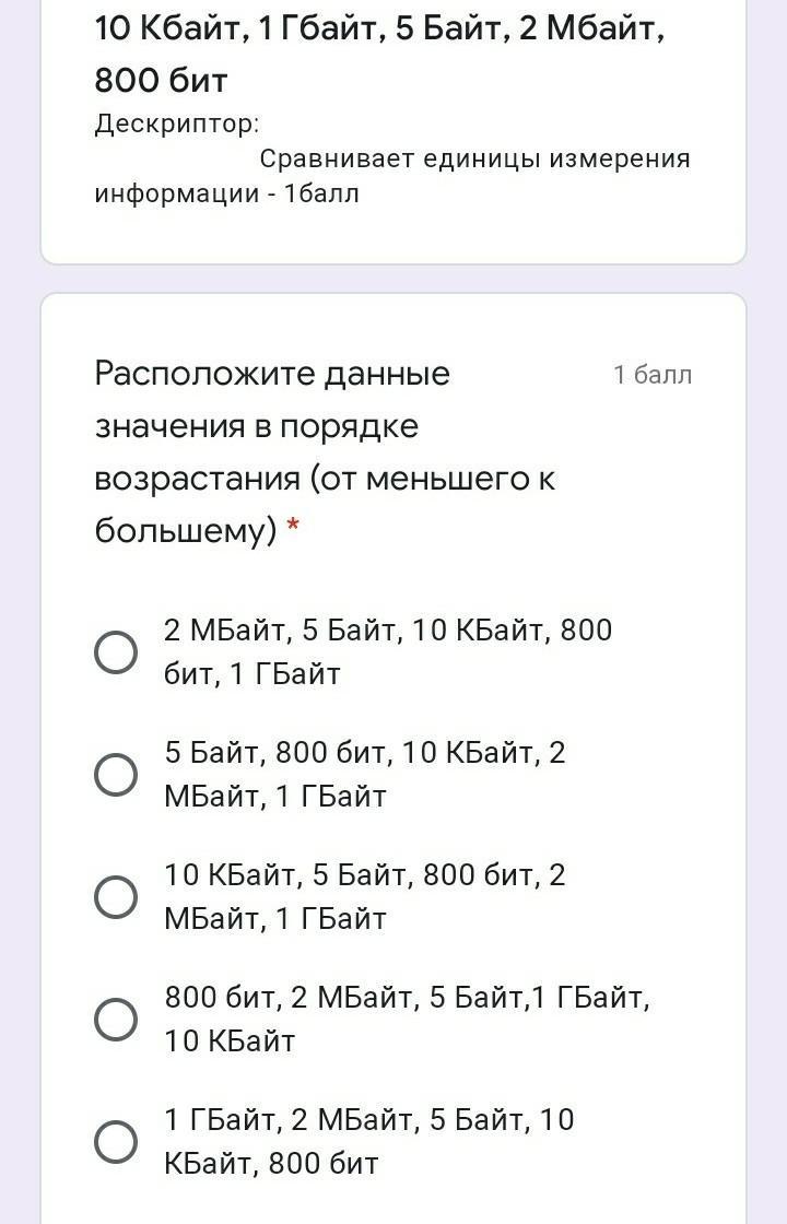 800 бит потом 2 мбайт 5 байт 1 гбайт 10 кбайт