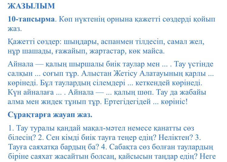 1)жартастар 2)самал жел 3) шыңдары 4) аспанмен тілдесіп 5) нұр шашады. 6) көк майса 7) ғажайып