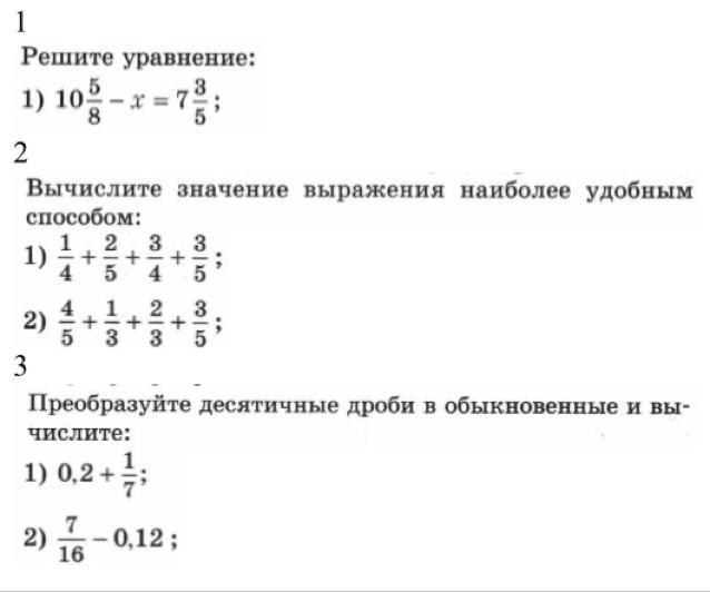 1)2/10+1/7=1/5+1/7=7/35+5/35=12/35 2)7/16-12/100=7/16-3/25=175/400-48/400=127/400