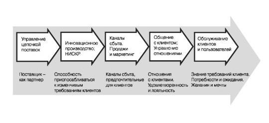 Связь между целями организации и существующими ценностями – это процесс создания ценностей, важнейший в каждой организации. Это путь, ведущий к результатам и созданию новых ценностей. Без создания ценностей цели любого бизнеса окажутся бессмысленными. Процесс создания ценностей в каждой области деятельности происходит по-разному, может даже отличаться от компании к компании.