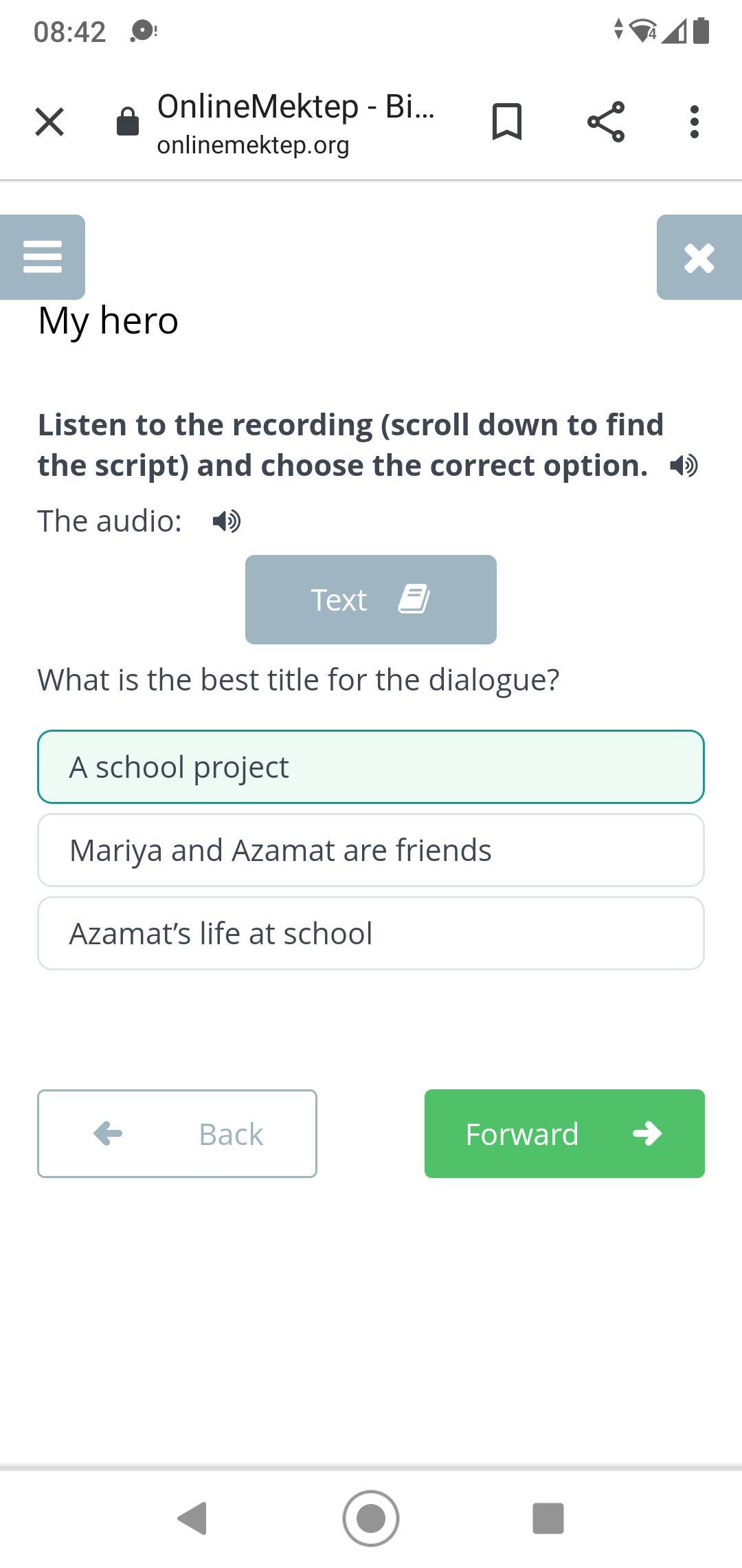What is the best title for the dialogue? Mariya and Azamat are friends Azamat’s life at school A school project