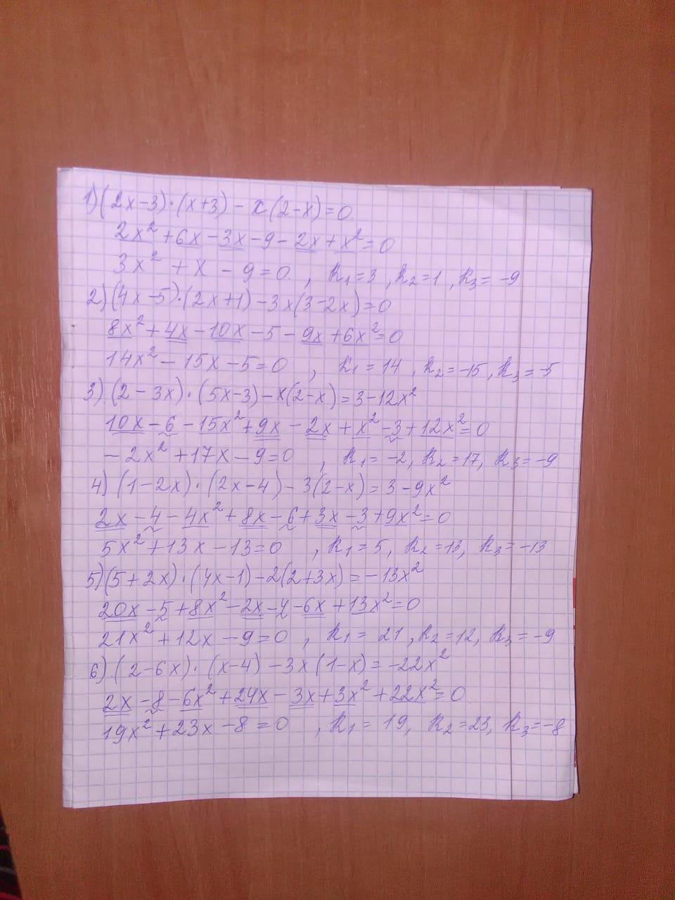 6) (2 – 6x) : (х – 4) -3x(1 - x) = -22х2.