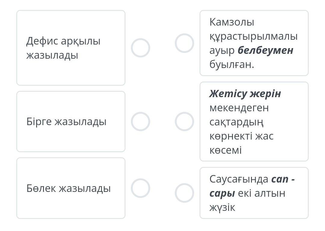 Сөйлемдегі қарамен берілген сөздерді жазылу емлесімен сәйкестендір.