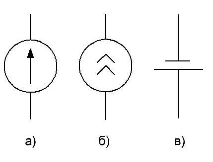 Источники тока относительно редко встречаются в реальной электротехнике - значительно чаще встречаются "источники напряжения" или источники ЭДС - изображаются на схемах как а на рисунке , или же в - если это точно источник постоянного напряжения.