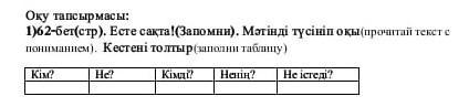 62 бет есте сақта Мәтінді түсініп, оқы кестені толтыр ПОМОГИТЕ