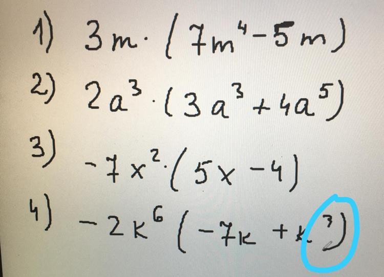 2) 2a³ * (3a³ + 4a⁵) = 6a⁶ + 8a⁸; (8а в восьмой, если плохо видно)