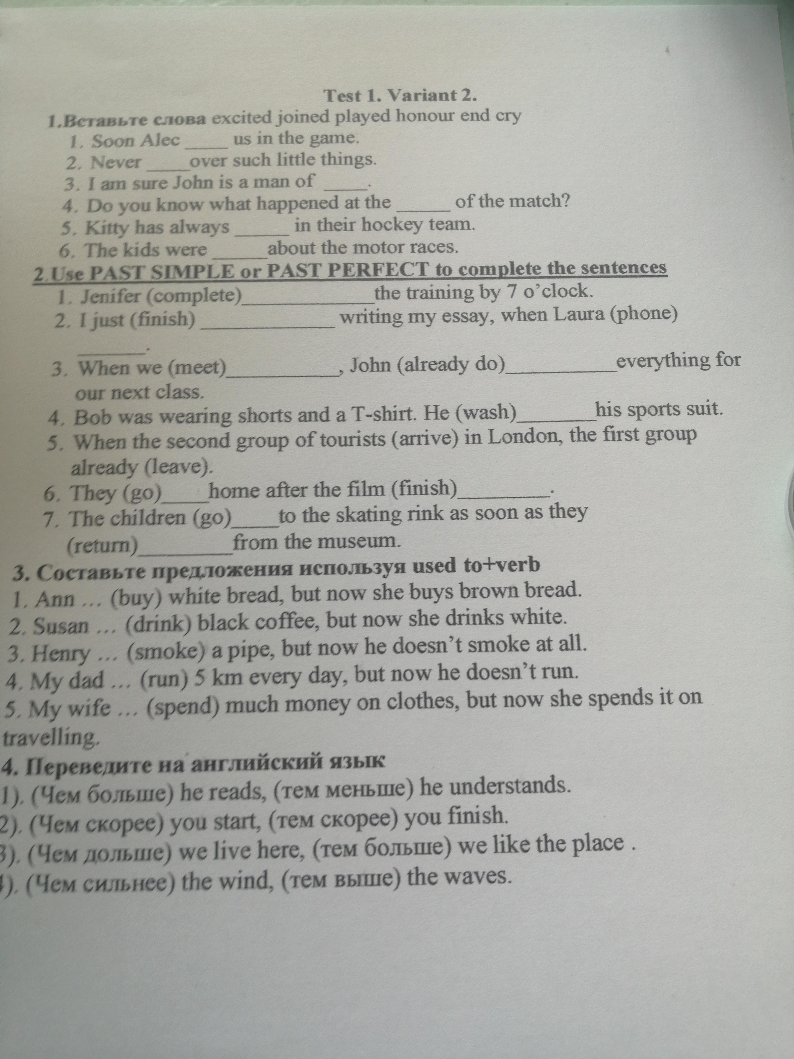 - had finished/phoned