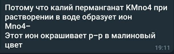 Почему раствор обычной марганцовки дезинфицирующей рану , имеет малиновый цвет ?