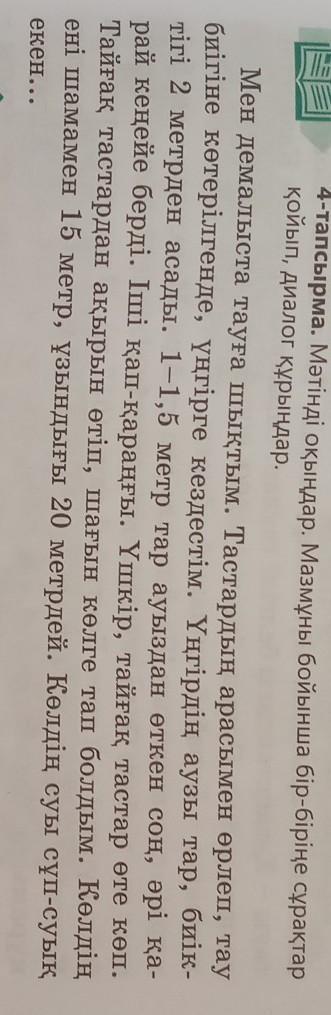-Үңгірдің аузы тар,бірақ үші кең ,қап-қараңғы.Сонымен бірге тайғақ тастар болды ,мен олардан өткен соң ,көл бар боп шықты.