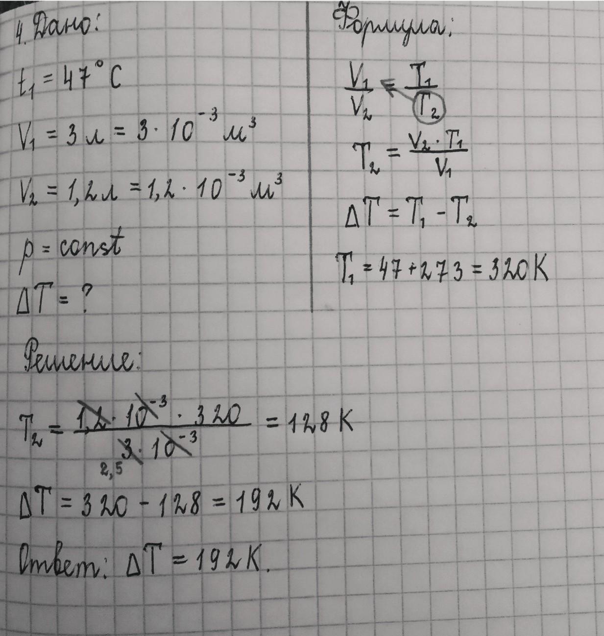 4.при температуре 47 градусов Цельсия газ занимает объем 3 л на сколько надо поднять температуру при постоянном давлении чтобы объём увеличился на 1,2 л?