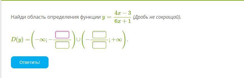 Ответ: D(y)=(-∞;-1/6)U(-1*6;+∞).